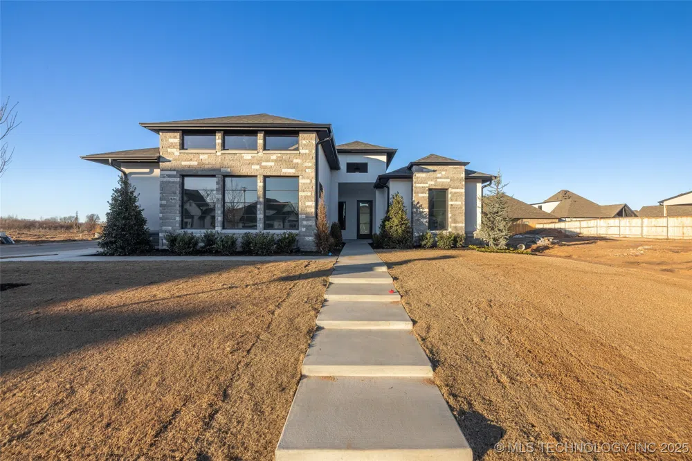 The perfect 1 story new construction in the very popular gated neighborhood in Bixby constructed by a luxury home builder. From the white oak chevron floor entry, to the open living room/kitchen with an oversized island with a counter top you must see, custom cabinetry and floating shelves. The covered patio is the perfect place to entertain. The large pantry with a refrigerator, lots of counter space with cabinets/drawers. The builder doesn't skip a beat on using every inch with custom built ins or beautiful shelves and closets. The large master bedroom connects to the private bathroom and large walk-in closet. This one story home has a separate beautiful "den" living space. The 2nd and 3rd bedroom are on one side of the home with a jack and jill bathroom. An office space just right for you. Everything was thought of in this new build. Location gives easy access to the freeway and a short drive to any shopping you need to do.